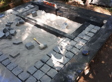 Мощение гранитной брусчаткой поверхности могилы,